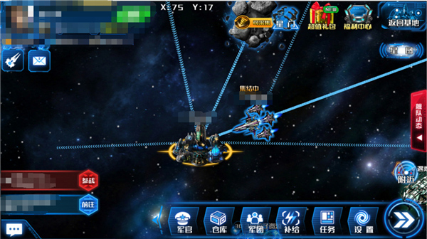 在地图上有丰富的交互玩法,可以进行资源掠夺、据点占领、舰队拦截、集结进攻、驻扎封锁、boss争夺。所有的进程都是真实可见,可以即时进行战术安排和策略抉择。