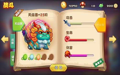 魔宠如伙伴 绿 蓝 紫 橙多品质魔宠除了多样的种类外,与战队中的伙伴一样也需要不断培养,品质从低到高依此为绿、蓝、紫、橙多种品质,需要不断进阶培养来提升品质。魔宠在进阶中消耗灵魂石与对应的魔宠碎片。灵魂石在“群仙屠龙”玩法中,通过挑战BOSS可获取。