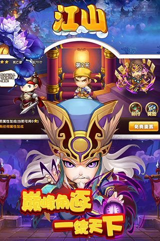4、以推图为主线,在借鉴了刀塔传奇战斗模式下,独创援军系统,打破了传统的5人战局。新增3个援军位置,让玩家精心培养的武将有了更多的勇武之地。