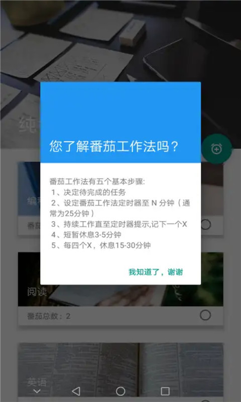 番茄 ToDo 的使用非常方便,点击左上角的加号就能添加番茄钟。你可以选择时间和频率,时间分为5、25、35分钟,如果你觉得预设的时间长度都不适合你,你也可以自定义时间。