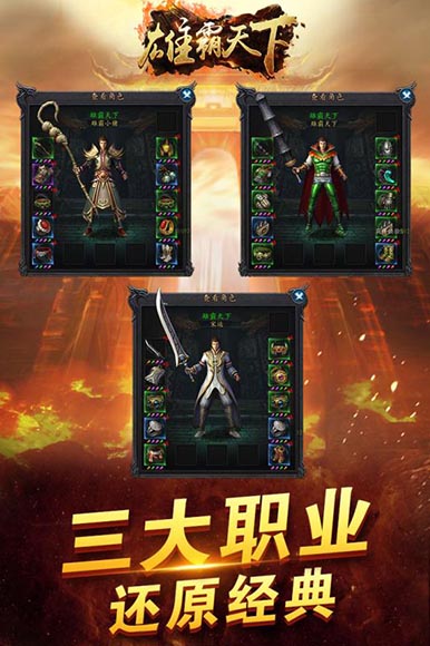 雄霸天下官方版是一款由重庆盟岩科技有限公司自主研发的MMOPRG传奇类经典手游大作,也是属于一款PRG手游,以蛮荒时代作为游戏背景,延续战、法、道“铁三角”的职业设定,游戏不管在玩法或核心系统等个方面,都原汁原味的还原了传奇1.76的经典玩法。“神装全靠打,升级全靠挂”,超多丰富的游戏副本,世界boss,野外挂机打怪练级,抢BOSS爆装备,沙巴克万人在线激情PK争夺皇宫。雄霸天下一种职业就有上百种的变数,将职业技能融会贯通,足够让你傲视群雄。利用神龙傲骨打造强化角色,能够激活强大的神龙