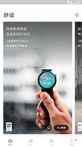 妙读APP手机版是一款图书阅读服务软件,含有海量书籍资源,在这里成就一个不一样的自己。让你充分利用碎片时间,提炼书中的干货。让用户快速读透一本书,并且平台上所有知识内容完全免费。让求知者畅快体验书籍的精华,解决知识焦虑。喜欢看书的你,赶紧来吧!该app同步全球知识库,提炼深度知识内容,让用户快速读透一本书的精华,获得干货,极大程度上节约用户的时间,让你的读书更加高效率。同时软件内容均由资深内容团队倾力打造,而且所以内容全部免费,让你畅享阅读的乐趣。该软件界面简约时尚,操作方便简单,拥有海量图书资源,可以为用户提供商业经营、历史文化、励志成功、社会心理、传记纪实、科学新知、艺术生活、养育教育、名家经典等书籍,带你领略中国传统文化,深入了解日本社会不为人知的动态。