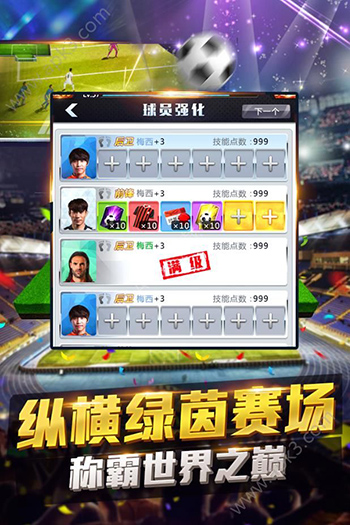 3、将任意球员训练到足球巨星水平,管理你的球队。