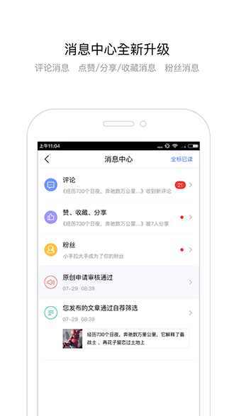 让创作者能在手机上便捷的管理和发布文章、图集、视频等内容,查看内容和收入数据,以及实时接收平台公告和消息。