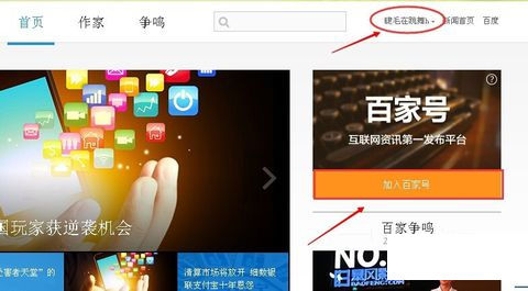 1、点击右上角登录百度帐号,登录之后,在帐号下面有一个百家号,点击加入。