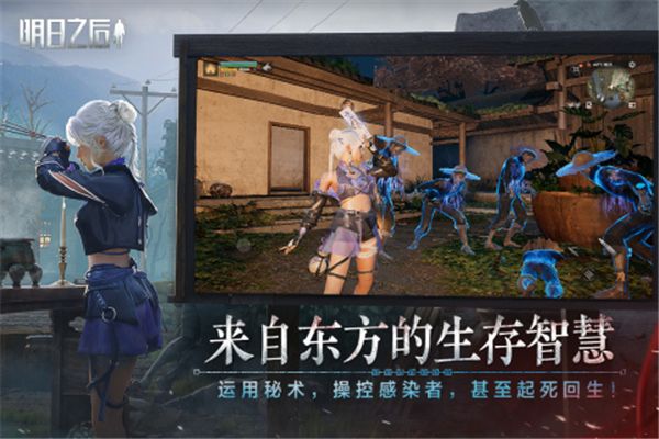 该游戏讲述的是在一场病毒灾难之后,人类的生存环境被严重破坏,生存资源变得非常匮乏。但作为主角你幸存了下来,玩家需要在这样恶劣的情况下补充食物、武装自己、搭建家园、寻找避难所,并且面对各种各样的感染物的袭击。同时,除了非常吸引人的末日生存题材之外,明日之后游戏在画面和BGM上也费了很大的功夫,采用优质细腻的游戏动画和紧张刺激的背景音乐,搭配上打击感十足的射击体验,完美塑造出在末日逃亡下的紧张感和刺激感,带给用户震撼人心的射击体验。而且在游戏中,玩家还能将收集起来的资源物质进行地点埋藏留言,或是在地图中寻找其他玩家埋藏的物质。