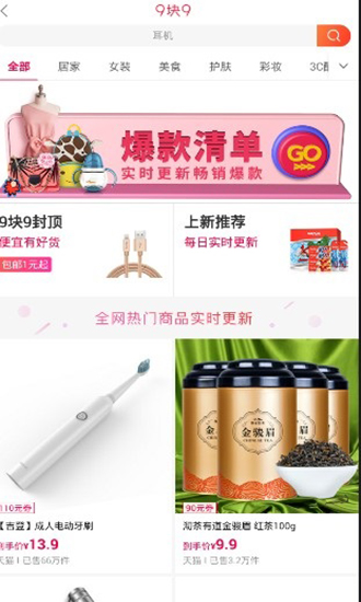 软件中的返利商城,购物即享返利,返利商城几乎涵盖所有知名电商,包括天猫、淘宝、京东、苏宁易购、携程、一号店、亚马逊、聚美优品等400多家电商网站。更有9块9板块,每日9点上新,全场包邮,全网抄底。