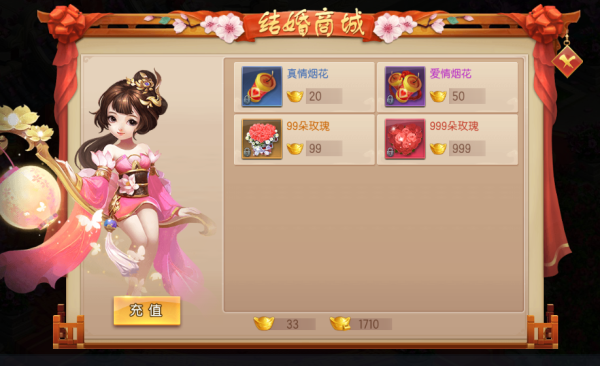 4.爱情宝匣。结婚双方可以互相给对方购买代表爱情的宝匣,购买后双方每天上线即可以领到大量的绑定元宝奖励;