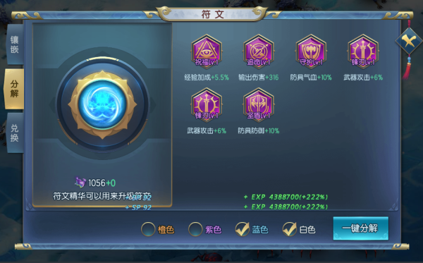 多余的符文也可以分解为符文精华,从而提升强大的符文;