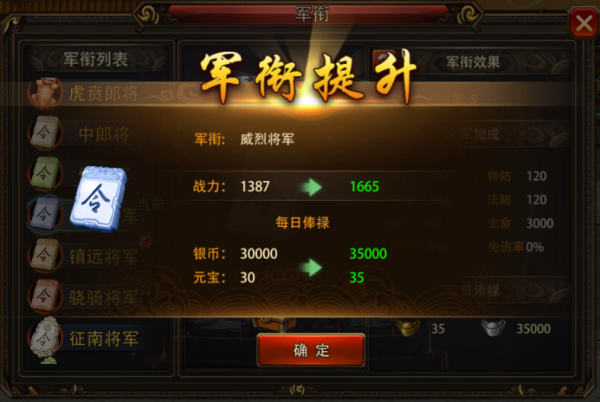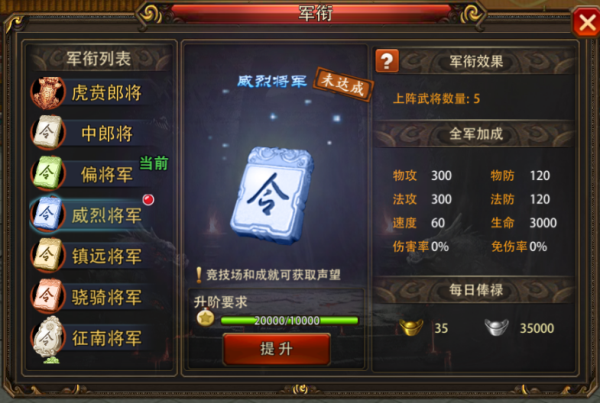 首先,也是最重要的,军衔等级决定上阵武将的数量,所以需要快速提升;