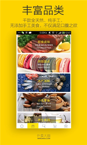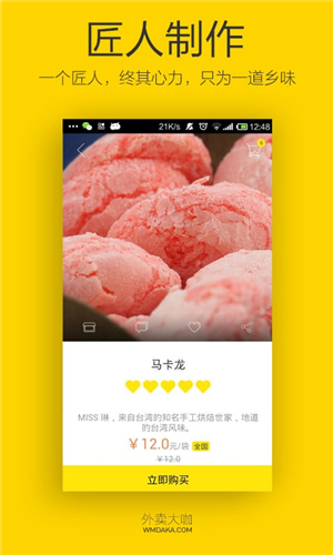 1、国内首款专注手工美食外卖的APP,手工美食,一键到家。