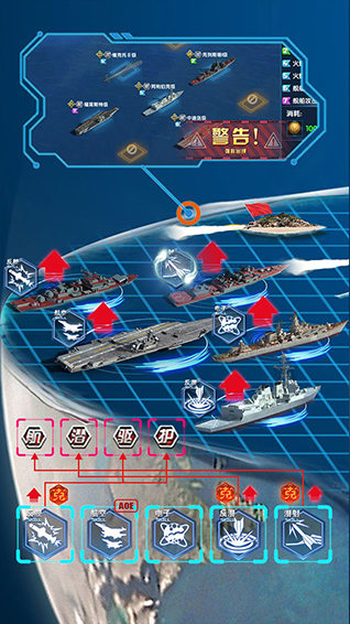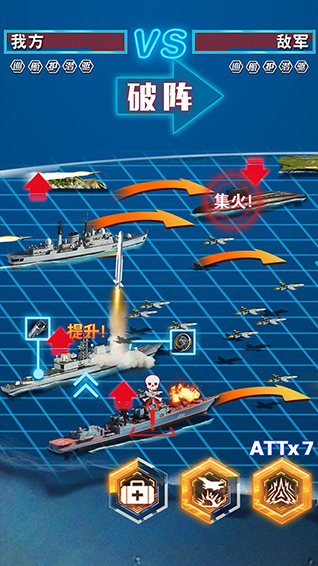 3、指挥官与多载体技能合击,排兵布阵,舰种相克,策略与操作双重考究。