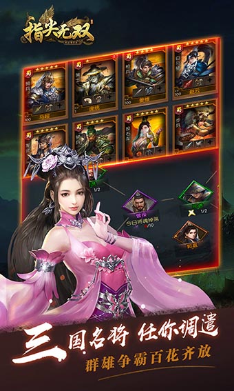 指尖无双中武将可大幅提高玩家的战斗力,并可在战斗中给予你很强的帮助,并且不同的武将均拥有不同的属性和技能,在战斗中一定要选好适合的出战武将哦!