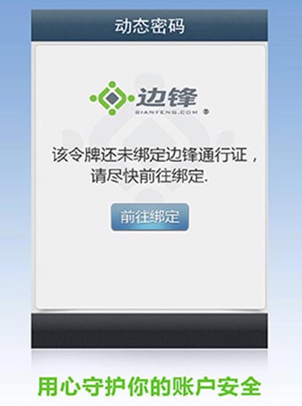 1、安装好软件之后,点击进入可以看见动态密码,点击前往绑定就可以了
