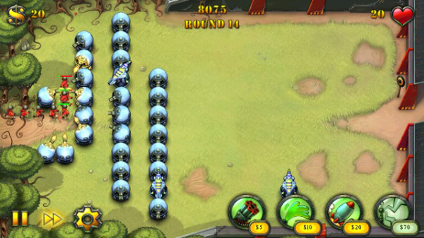 坚守阵地中文版为英文名为Fieldrunners,是一款以炮塔防守为核心的塔防类手机游戏。该游戏具有非常高的可玩性,因为其自由度非常高,对于玩家的限制不会太多。游戏画面总体给人的感觉还是比较细腻的。玩家的主要任务就是尽可能让敌方人物离自己家的炮台远一点,并将地方人物全部攻击倒地。在许多玩家眼中,该游戏无论是从画面感还是游戏本身的操作性上,都是得到了一致的好评。该游戏为玩家提供了三种不同的游戏难度,经典、简单和高手,在最新的游戏版本中还加入了无尽模式。总体都可以给玩家一个出色的游戏体验!如果您喜欢的话就来体验一番吧!