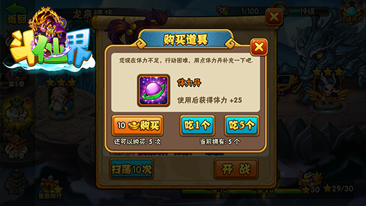 当然快速扫荡的同时体力的消耗也是快速的哦,所以别忘了去商城里买足体力丹,尽情扫荡再无后顾之忧。