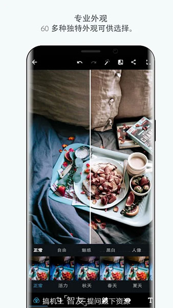 总结:Adobe Photoshop Express 是一款绝佳的照片编辑和拼贴画制作软件工具,可以在移动设备上进行简单、快速且功能强大的编辑。免费下载和体验 60 多种专业外观以及降噪和除雾等高级校正功能。