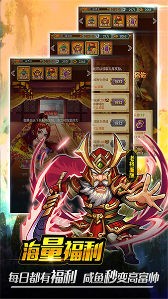 童话三国志手游最新版是一款角色扮演类手游。细腻的游戏画面和精致的人物模型,将会给玩家带来极佳的游戏体验。全新的剧情给玩家一种融入其中的感觉,随着剧情不断发展,玩家踏上旅途之时,将会遇到很多全新的伙伴以及新的难题,玩家需要踏过所有的难关,提升自身的实力和伙伴的力量,为了未来的战斗,你需要合理搭配阵容,利用职业优势组成超强的战阵,击败你的敌人。在这个平行世界里,本来是一片祥和安宁。但是坊间突然传出消息,传国玉玺丢失了, 传国玉玺为何物?谁也不知道,但是当年秦始皇凭借它获得了无尽的神力,一举横 扫了六国平定了中原,所以有言得玉玺者的天下。如今各路霸主和外域异族纷纷起兵造反, 想割据一方作威作福,这其中最受劫难得便是黎明百姓。相信你绝不会容忍外族欺辱和 同室操戈,赶快结束这一切吧,召集各路英豪,将异族驱逐出去,并寻找到传国玉玺 结束这纷乱的朝代!