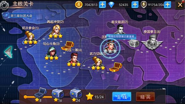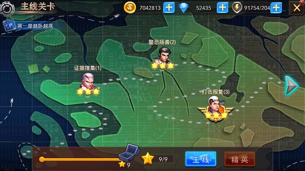开局进服过引导都能达到5~6级左右,即可自由点击功能为你自身提升。点击右下角行动即可进入副本通关,副本分别为主线与精英两大章节。每章节都能获取指定奖励哦!