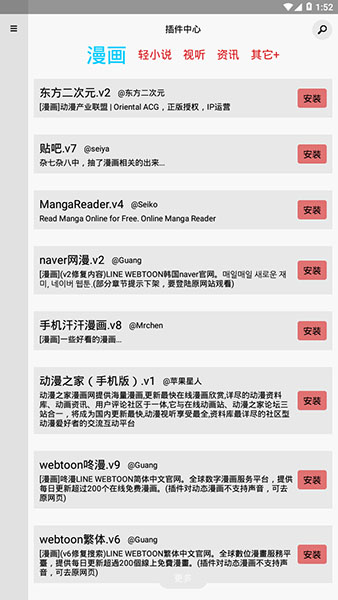 1、程序轻巧,相比其前身漫画.D,程序体积轻巧许多,插件需要后期下载,一定程度上节省了空间,增强了App的扩展性。