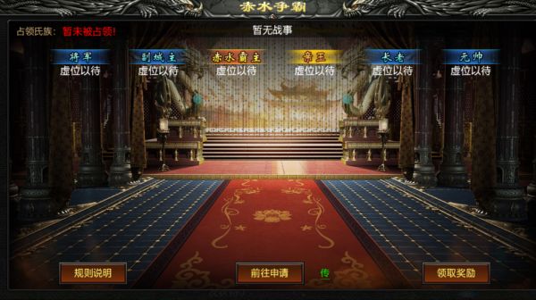 2:赤水争霸:这是氏族和氏族的争夺,以氏族为单位的群体活动,氏族首需先提交活动开启申请,申请需消耗10W金币和城主令牌,只有氏族族长和副族长才可提交申请,只要有一个氏族提交申请,其余氏族玩家均可参与活动。活动以最终占领赤水殿的氏族为胜利者。占领氏族可获得巨额奖励。