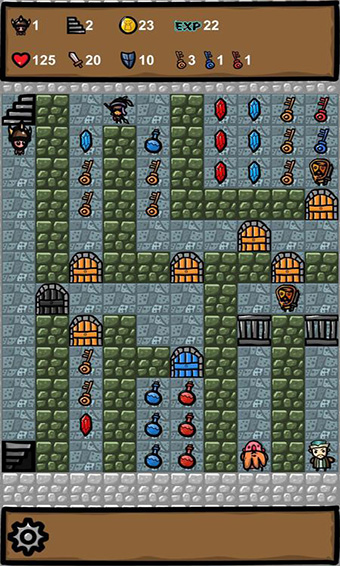 魔塔2019:勇者冒险这是一款有着经典像素风格的闯关冒险游戏。故事的剧情很老套,一个大魔王在看到美丽的公主后边垂涎公主,但是公主并不喜欢他,于是他就恼羞成怒,把公主给绑架到了魔塔里面,国王希望你这个勇敢的王子,对就是你没错,勇士,国王希望你能够打败魔王救出他那可爱的宝贝女儿。游戏的玩法很简单,玩家需要获得关卡内的全部钥匙要来自己获得进入下一关的条件。游戏里设置了很多关卡,每个关卡里面有很多魔兽,同时在魔兽出现的地方有着大量的可以消灭魔兽的武器,在此过程中玩家将要面对困难重重的战斗,需要你仔细的根据不同的事件和所见所闻进行规划和挑战,拥有无比轻率的内容,而且不同的选择将会为你带来不同的结局。在你遇到困难的时候或许还可以问问游戏里的小子哦,她会给你指明前进的方向。
