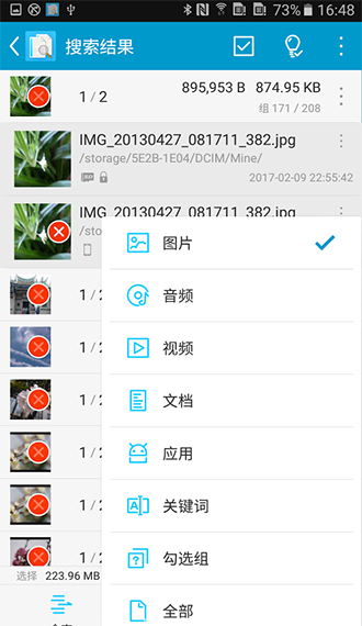 搜索重复文件支持搜索图片,音乐,视频或者是自定义文件类型。