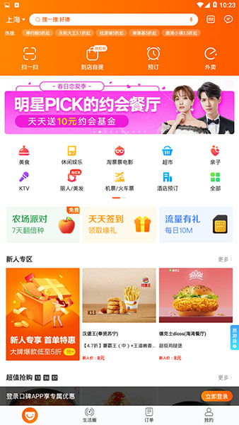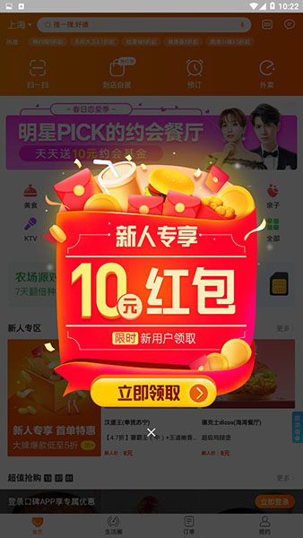 阿里巴巴旗下开发的一款生活服务软件,其中涵盖了餐饮、购物、娱乐、住宿以及生活服务等各种功能,在各种商家都能享受不同的优惠。用户可以通过软件直接进行附近商家查询,支持自行定位,推荐周边美食以及优质服务的各类型商家,能让用户可以轻松找到高评价火爆的商铺。合作商户都可以利用软件进行支付,享受随机金额立减优惠,并且这项优惠可以与支付宝、饿了么优惠同享不冲突。通过口碑app,用户不仅仅是前往实体店才能享受优惠,足不出户也可享用,一键查询附近外卖商户,为你推荐最火热的外卖商家,轻松点购,优惠立项,坐等外卖来敲门。除此之外,还支持用户进行优惠购买电影票、火车票、机票以及酒店预定等功能。特色热门商圈,周边游,带你领略身边最好风景。新人登录更有机会获得红包奖励,即送即用。