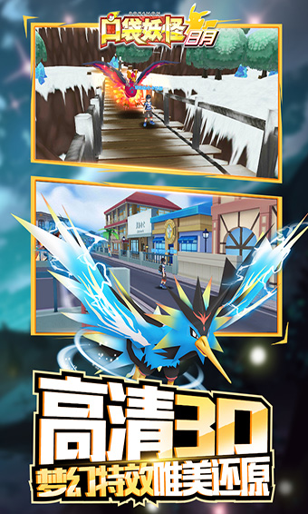 口袋妖怪日月是一款全3D手游。苍空精灵从天降,双翅震动阿罗拉,全3D打造美轮美奂的场景,3D精灵模型细腻真实,彻底满足童年幻想!多视角切换,战斗随心自由,以更震撼的角度欣赏庞大世界。让你的冒险更加传奇!全3D化画面,可360度旋转的视角,高清优秀的画面,让每一个进入游戏的玩家得以迅速被吸引,进而沉迷其中。初次进入阿罗拉,笔者便被吸引住了,吸引住我的无他,单单是可以自由操纵人物在庞大的游戏地图上自由奔跑这一点足矣。全部萌宠尽数登场,七大世代精灵自由乱斗,海量精灵尽情收集!实时竞技玩法,畅爽PVP公平开战!玩家在线对抗,全球无差别匹配,你的实力将让世界为之惊叹!道馆玩法、联盟大赛……多重PVP模式,让你的竞技之心跳动不停!多人副本、世界BOSS,佛系训练家也能感受满满的欢乐!体验巅峰对决,比拼技术实力!