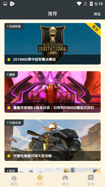 魔兽世界、炉石传说、风暴英雄、英雄联盟、DotA2等热门游戏的游戏社区。该软件所有提供的内容服务都是基于该平台官网的。每一个社区根据不同游戏的类型进行了一个分类,每一款游戏的论坛下都有很多的主题帖,用户们围绕着主题帖进行讨论。主题帖的内容主要包括当前游戏的一些热门话题、关于游戏的技巧等,热爱游戏的朋友在这样一款论坛中进行畅聊一定不会感到枯燥和乏味的。主题帖中所回复的内容,也有很多精彩至极的,有幽默风趣的调侃帖,有正经分析的内容贴,大家各抒己见,发表自己的看法和见解,这样一种良性的互动,给所有的用户都能带来乐趣和收获。如果您也是一名游戏爱好者,可前来尝试nga玩家社区。