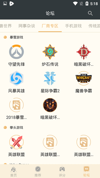4、论坛模块将所有的游戏都进行了一个分类,用户可点击进入自己感兴趣的游戏模块,里面有很多游戏的主题帖等着你去查看、讨论。
