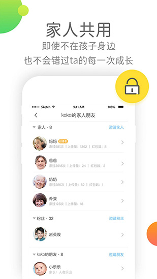 您可以邀请其他家庭成员都参与进来,让不在宝宝身边的亲朋好友也能实时了解宝宝最新动态,为宝宝添加伙伴,和爸爸妈妈们交流养育孩子的经验。