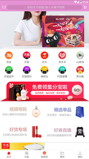 齐全品类:女装男装、美妆护肤、鞋包配饰、生活百货、美食文体、母婴数码等等。品类丰富,各种品牌抄底价,抢先加购手慢则无。