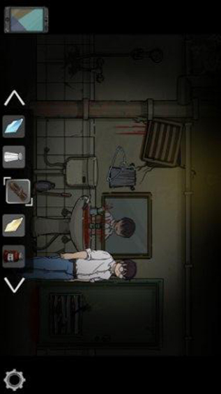 4、进去通道,出现两个页面,衣服架给管子,绳子挂在衣服架上,人顺着绳子爬下去,通过该场景。
