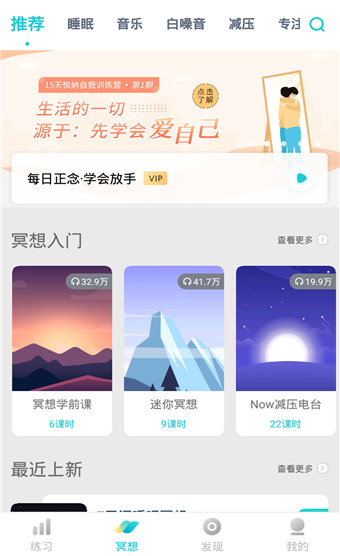 - 练习页新增今日冥想进度环,定制练习目标,放松减压,助眠修心;