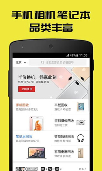 专注于手机、笔记本等电子数码产品的回收业务。采用回收商竞价模式,将回收价格透明化,并与京东、1号店、沃尔玛等知名品牌合作,为用户提供优质便捷的上门回收服务和一站式手机升级置换服务。
