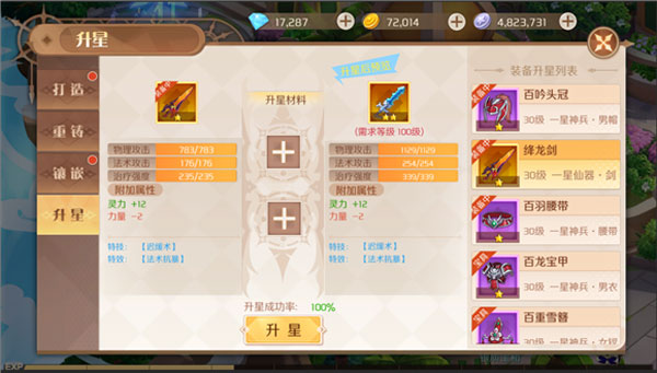 神兵和仙器可以升星,升星后,属性更高。但是升星后的装备装戴的等级需要注意,不要升星上去后,发现自己穿不了哦!