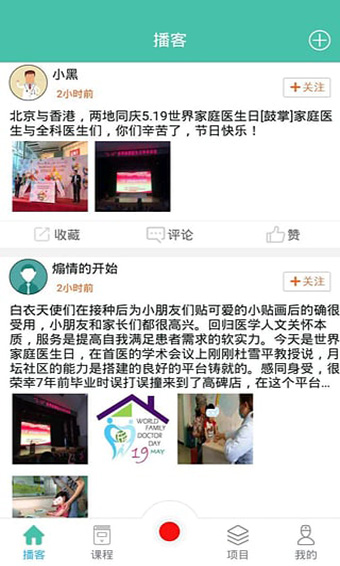 1、在播客中,可以发送直播、视频、图片、文字,分享您的医学动态。