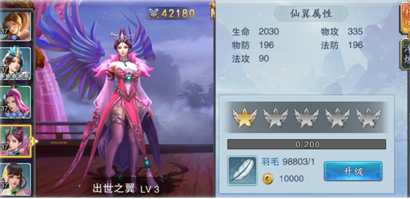 l 翅膀每次升级,都会给武将的生命、物攻、物防、法攻、发防增加属性;