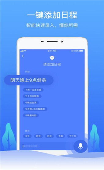 支持语音输入添加日程,自动识别语音中的日期和时间,并自动设置提醒。