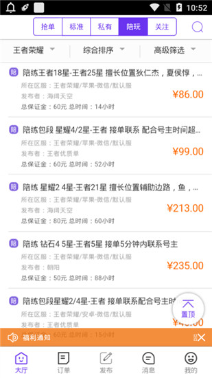 2.点击接单大厅,可开始选择需要代练的游戏,挑选订单