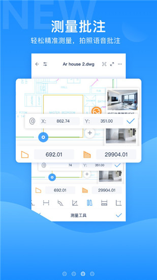 支持对圆、圆弧、角度、长度、坐标、面积、距离等进行测量标注。杜绝计算差错,数据一测即得