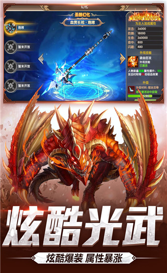 新增玩家交互和社交系统,全屏互动无间隔。人物、装备、坐骑、翅膀多种特效和设计,百变外观,酷炫外观换不停