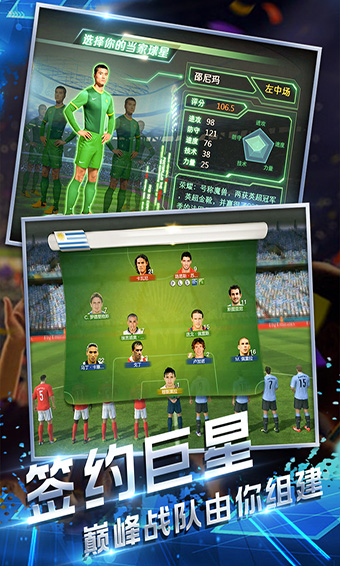 足霸天下手机版游戏是一款卡牌(3D竖版)类足球手游。玩家在游戏中通过知名球星收集和培养,球队经营和管理,多变战术和实时选择决定胜负。球队战术和球员技能的赛前安排和临场操作,公会系统及赛制系统的设定,让玩家大幅度感受和领略足球魅力的同时,建立良好的交流互动,形成球迷性质的社交平台。在游戏中拥有了充满各种不同激情的足球赛事,并且还有更多盛大的比赛,看看那一方才是真正的足球少年吧,于此同时你将要去对抗更多强大的足球队,并且击败他们,夺取他们在足球事业上面的荣耀,让自己成为黑马吧。组建一支自己的最强战队,出来和玩家之间的战斗外,还有丰富的培养系统,收集自己喜欢的球员,加油吧,少年,喜欢的朋友可以来下载体验吧。