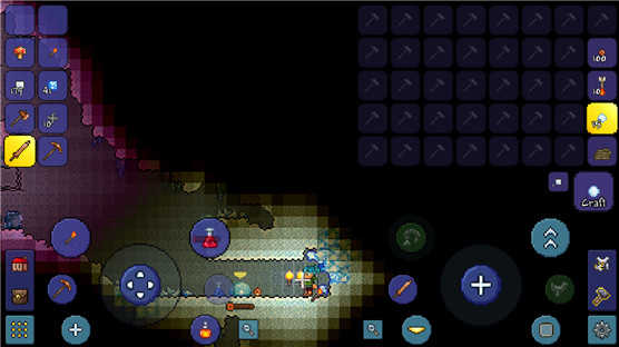 动作冒险类游戏,在游戏中玩家将能够拥有多种游戏体验:探索、冒险、战斗、生存、联机、创造……在游戏中你将能做到很多在其他游戏中做不到的事情,并且游戏无任何明确的主线,并且不会强制玩家去完成任务,你可以自由的在其中做任你你想做的事情。游戏推出的时候是PC版本,如今经过了完美的移植,即便在手机中玩家也可以享受到这种独特的游戏体验。游戏虽然采用了全像素画风,但是其中的物品等,辨识度还是非常高的,游戏中还有着许多有趣的特效,让你可以享受到更多有趣的游戏体验。游戏中的制造系统和升级系统都打造的十分完美,让你可以在其中拥有更多良好的体验,开放性的游戏内容给玩家赋予了超高的自由度,加上非常有趣的音效,将会给玩家带来更多优质的体验。