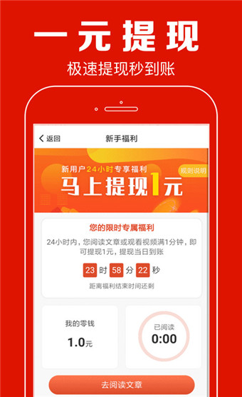 聚看点app安卓版是一款能够为用户提供一手新闻资讯、八卦头条、新鲜视频的手机软件,在这里用户能够看到自己喜欢的内容分类,其中包括有国内外的新闻资讯、体育、娱乐、财经、时尚、军事、游戏等等多种方面的资讯内容。该软件采用大数据分析算法为基础打造而成,在这里用户可以看到实时更新的新闻资讯,下拉列表就可以刷新内容,非常方便用户的阅读。并且智能化的软件系统能够根据每个用户的兴趣、爱好、关注点等多个维度为用户进行个性化的内容推荐,能够轻松满足不同用户群体的各种需求。另外该软件内还涵盖了各种趣味视频内容,包括有搞笑、情感、生活、奇葩等多种热门视频类别,能够让用户实时开怀大笑。最重要的是该软件在阅读的时候还能够赚钱,通过邀请好友下载这款软件能够获得金币,每天完成给出的任务也能够获得金币,还可以进行签到获取金币等等,多种方式来获得金币,当金币积累到一定数量的时候用户可以将金币转换成现金提取出来哦,你还在等什么赶紧来下载吧!