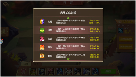 全能光环:全能光环在各色光环中英雄池是最深的,同时也是相对容易激活的。全能光环在英雄的选择和搭配上具有很大的自由度和灵活性,对资源的利用程度是最高的。对于新手玩家来说,在游戏前期可以利用自己抽到的英雄组一套全能光环进行战斗,而不必去刻意的追求双色乃至纯色光环,做到资源的最大利用。