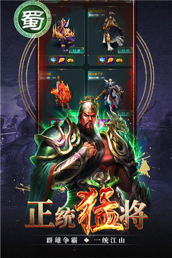 1、武圣关羽、猛将吕布、怒目张飞...内设副将系统,玩家可选择三名武将跟随出战,且在战斗内随意切换不同的武将。各个武将的技能不同,输出、控制、治疗、减伤,玩家可根据战斗情境进行选择。