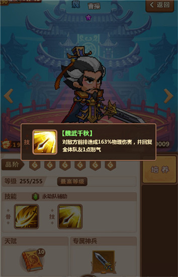 1.策略和趣味性强,如何实现永动是关键。 2.武将分工明确,搭配多变。 3.在前几回合不出现减员的情况下,战斗力极强。