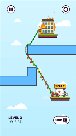 1.Rope Rescue游戏很简单!拖绳做一个安全的道路,解救所有的火柴人